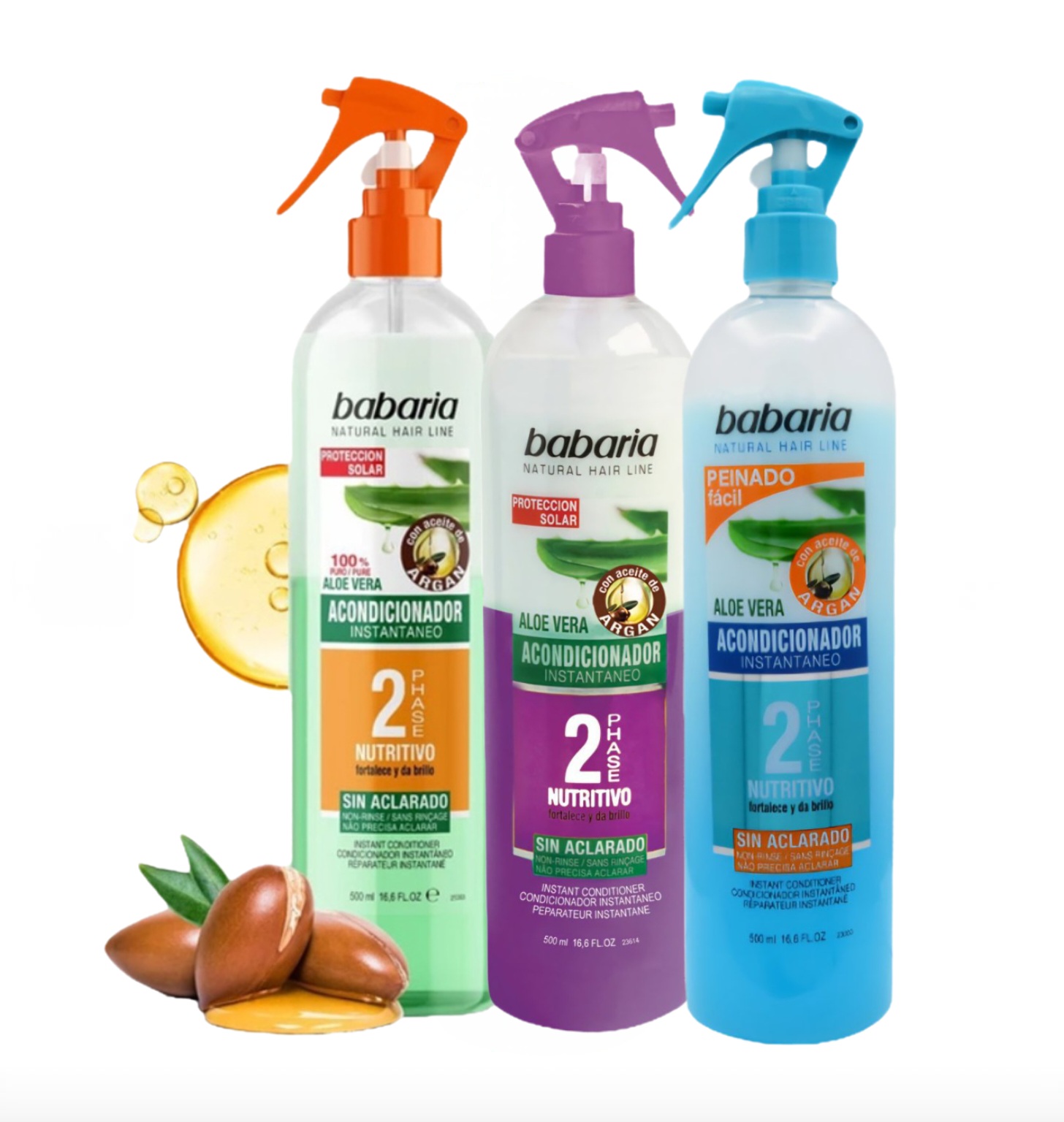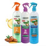 اسپری دوفاز آلوئهورا باباریا (500 میل) حاوی عصاره طبیعی آلوئه ورا و روغن آرگان است و برای موهای معمولی، خشک و آسیب دیده مناسب است. علاوه بر آن مانع گره خوردن موها میشود و از مو در برابر حرارت محافظت میکند.