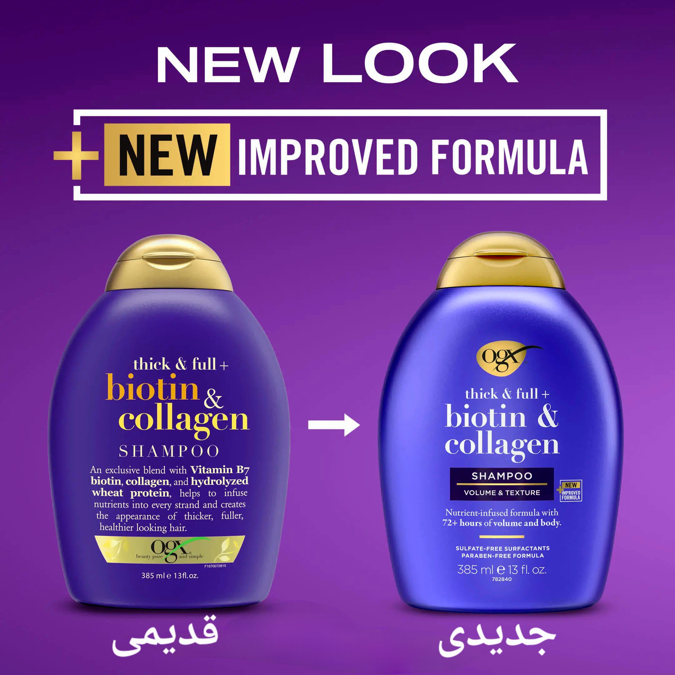 شامپو اوجی ایکس بنفش یک شامپوی فوق العاده با کیفیت برای موهای کم حجم است که موجب ضخیم تر شدن و افزایش حجم تارهای مو میشود. مواد معدنی موجود در این شامپو موجب تقویت و تغذیه موها شده در نتیجه موها سالم تر و درخشان تر به نظر میرسد. شامپو بیوتین و کلاژن ogx تمام آلودگی و ناخالصیهای مو و کف سر را تمیز کرده و از بین میبرد و بلافاصله پس از استفاده ظاهری پرپشت به موها میدهد؛ همچنین با رایحه ترنج، یاس و وانیل موها را خوش بو میکند و این محصول را شما می توانید از سایت مای روژانو خریداری کنید.