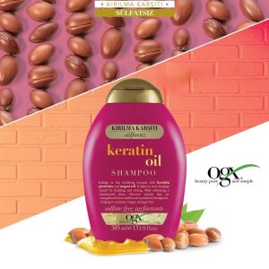 شامپو کراتینه ضد شکنندگی مو او جی ایکس Ogx Keratin Oil حاوی کراتین جهت ترمیم و بازسازی موهای نازک و همچنین حاوی روغن آرگان جهت آبرسانی و تغذیه موها می باشد.