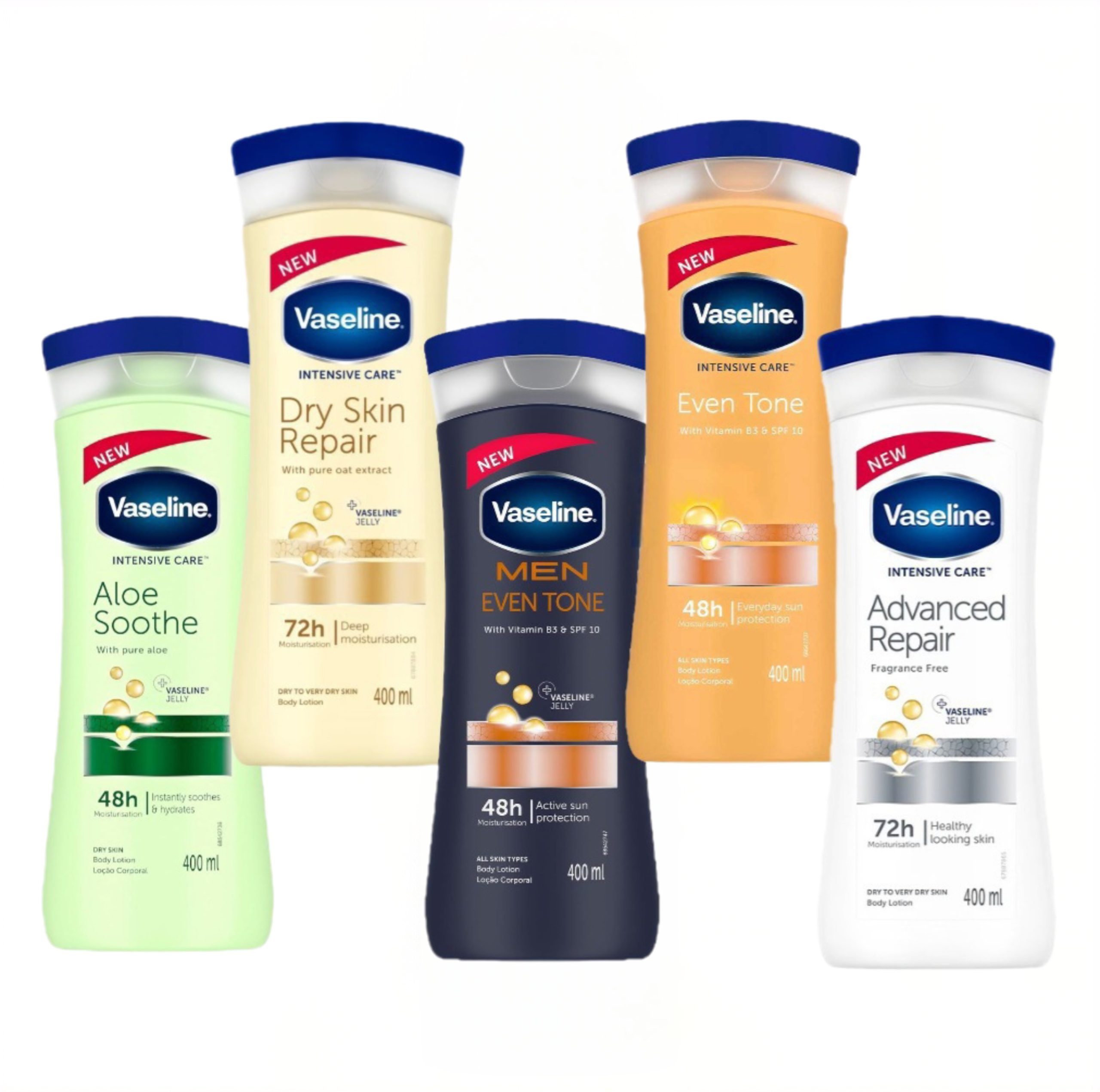 لوسیون بدن وازلین برای پوست های خشک بسیار مناسب بوده و به سرعت و به مدت طولانی پوست را نرم و مرطوب نگه می دارد. این لوسیون بدن ازبرند وازلین حاوی شی باتر ، آلوئه ورا ، کاکائو و همچنین ویتامین می باشد. این ترکیبات قادر است پوست را عمیقا مرطوب و درخشان کند.