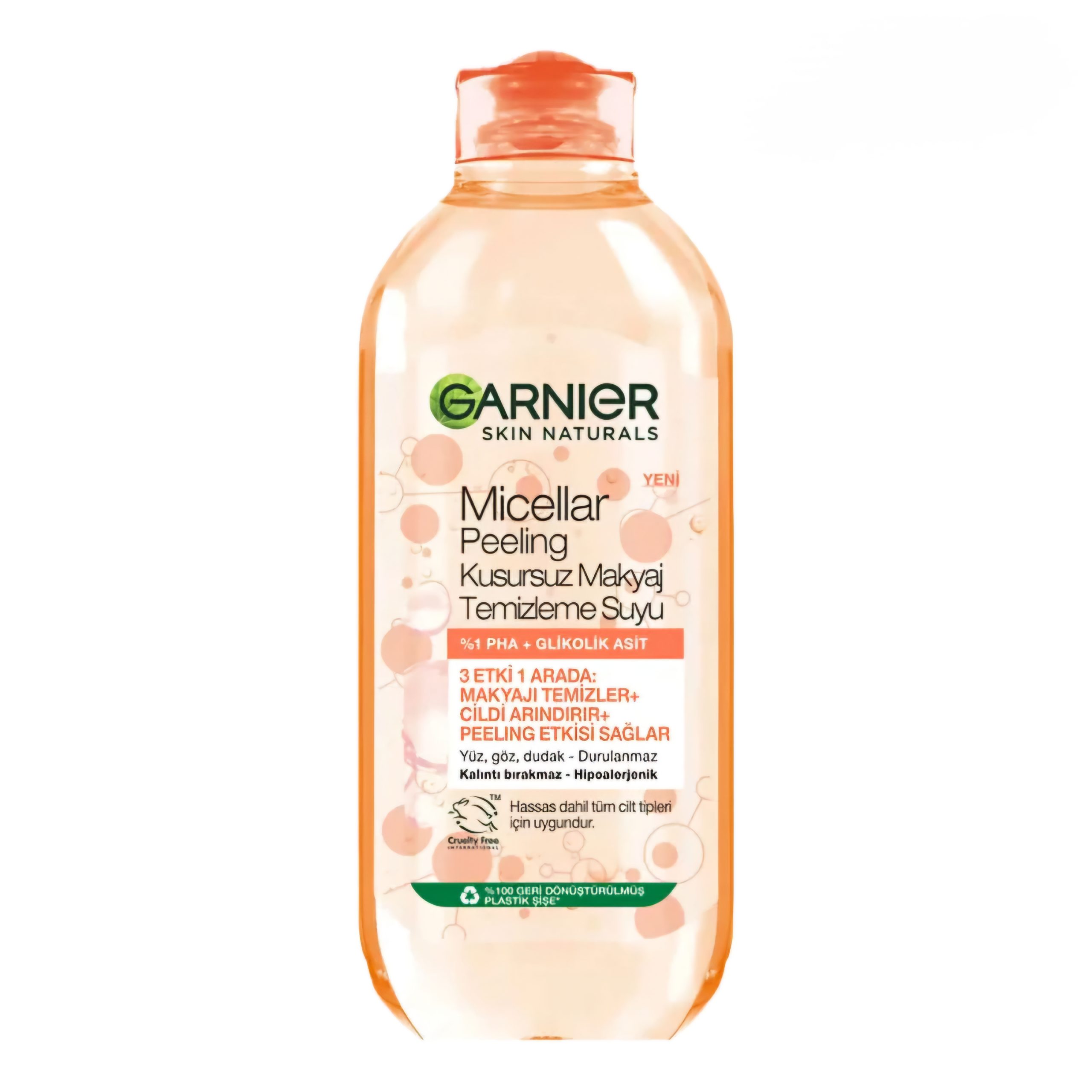 محلول میسلار واتر گانیر مدل PEELING محلول پاک کننده حاوی ترکیبات لایه بردار مناسب انواع پوست و حتی پوست های حساس می باشد. میسلار واتر پلایه بردار گارنیر بحاوی 1% پلی هیدروکسی اسید به همراه گلیکولیک اسید بوده و علاوه بر پاکسازی پوست از آلودگی ها و چربی پوست باعث لایه برداری ملایم سلول های مرده پوست و بهبود شفافیت و درخشندگی آن می شود. این میسلار واتر مناسب صورت، دور چشم و لب می باشد و نیازی به شستشو ندارد.