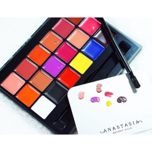 پالت رژلب آناستازیا، یک پالت حرفهای 18 رنگ، با رنگهایی از مقدماتی و خنثی تا پررنگ است. این پالت مشتمل بر 13 رنگ مشخص همراه با 5 رنگ اصلی است که میتواند به صورت جداگانه یا مخلوط با سایر رنگهای پالت، استفاده شوند.