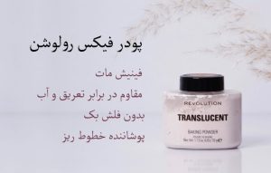 پودر فیکس رولوشن یک پودر تثبیت کننده آرایش محبوب و خارجی است که دوام و ماندگاری آرایش را افزایش داده و با جذب چربی از ایجاد براقیت و حالت کیکی پوست جلوگیری میکند. خطوط و چروک های ریز اطراف چشم و لب را محو کرده و پوششی یکدست و مات روی پوست ایجاد میکند. بافتی سبک روی پوست دارد و در برابر تعریق و رطوبت مقاوم است.